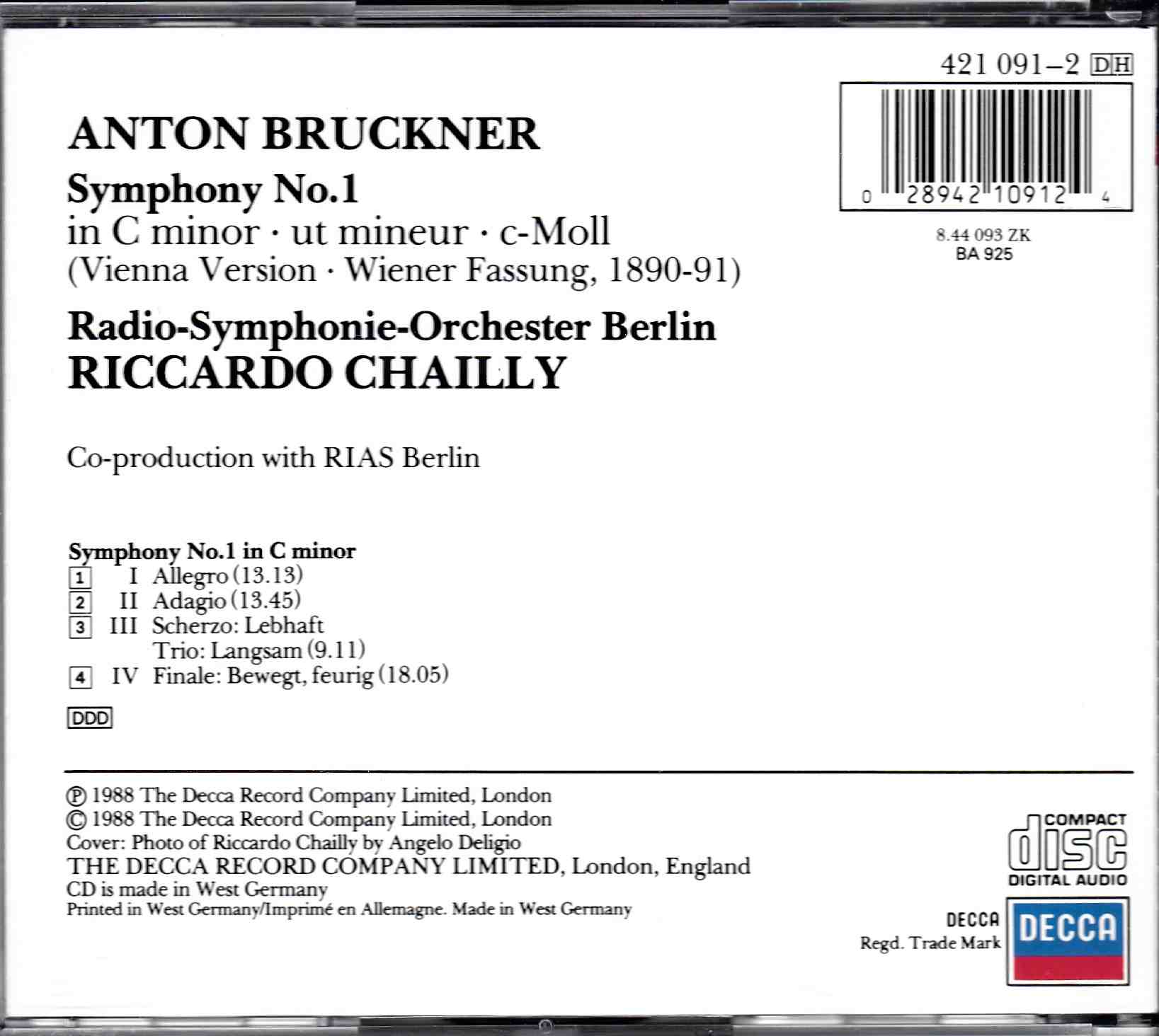 Bruckner: Symphony No.1 in C Minor – RSO Berlin, Chailly | CD, Decca