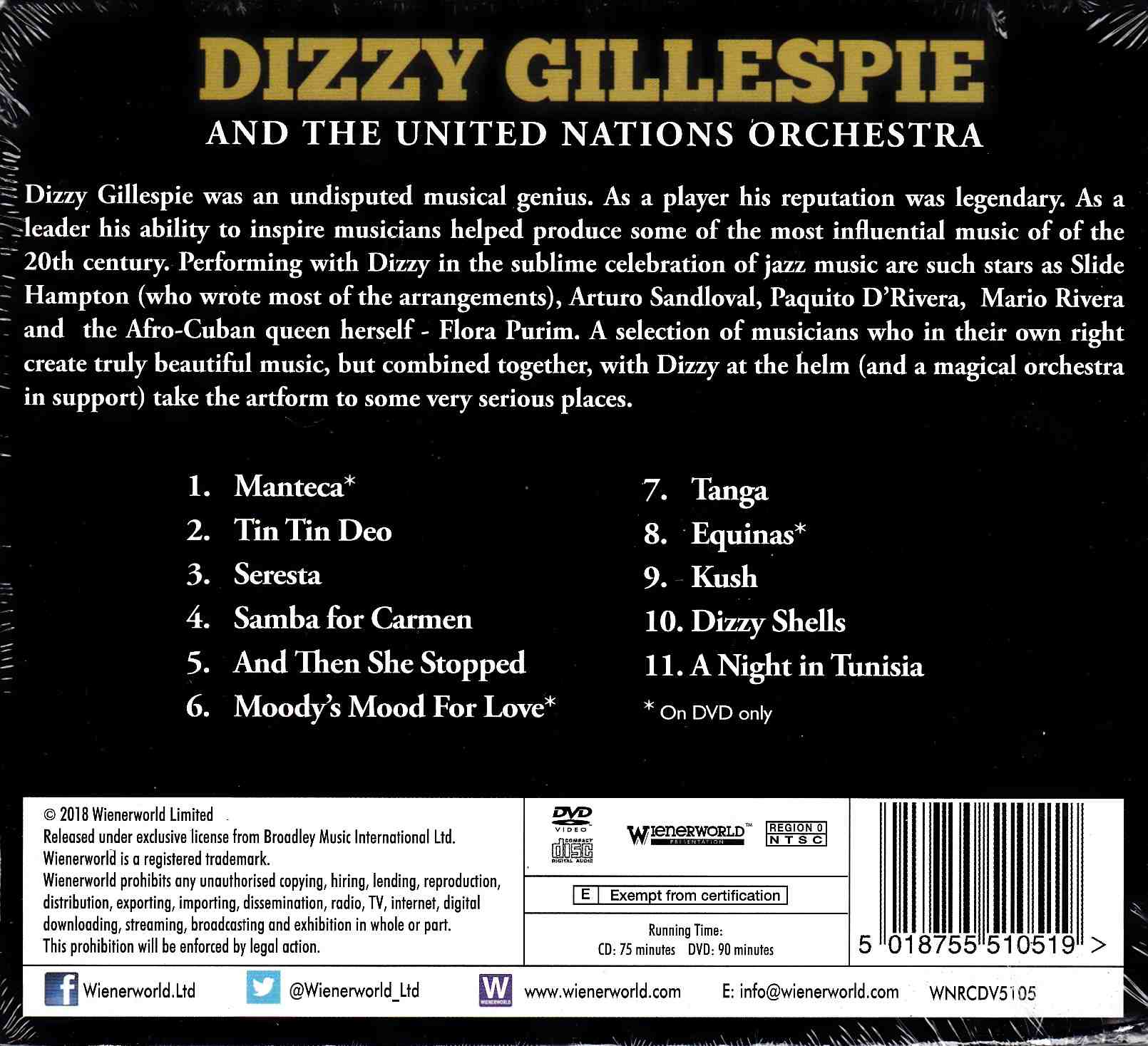 Jazz giant Dizzy Gillespie’s final recorded performance, filmed live at London’s Royal Festival Hall in 1989 with the United Nations Orchestra The United Nations Orchestra was created by Dizzy Gillespie to “showcase the varied influences that he considered valuable to the development of jazz”. The 15 member ensemble on Live at Royal Festival Hall, London, was a true all-star orchestra, 10 of its members being bandleaders in their own right.
