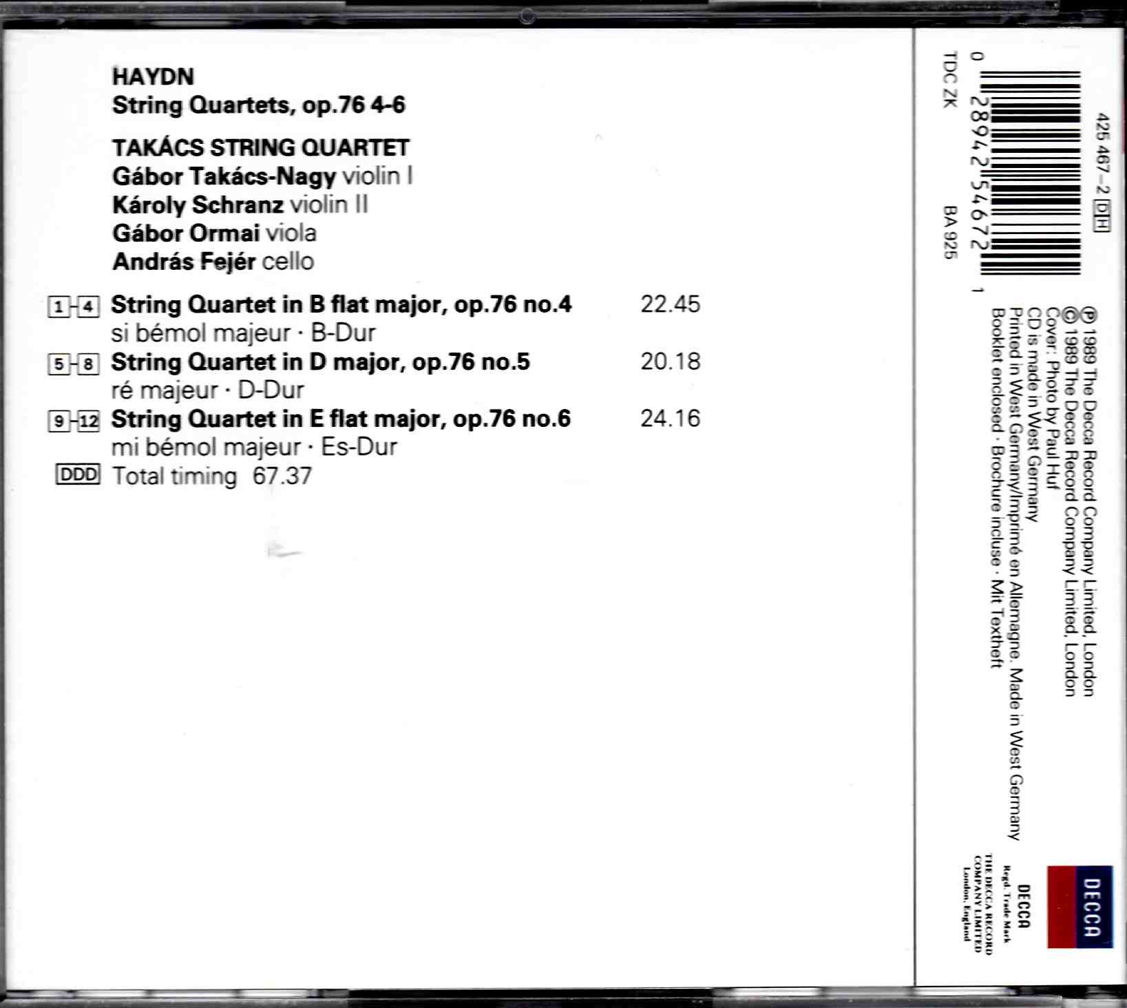Haydn: String Quartets Op.76 Nos.4-6 – Takacs Quartet | CD, Decca