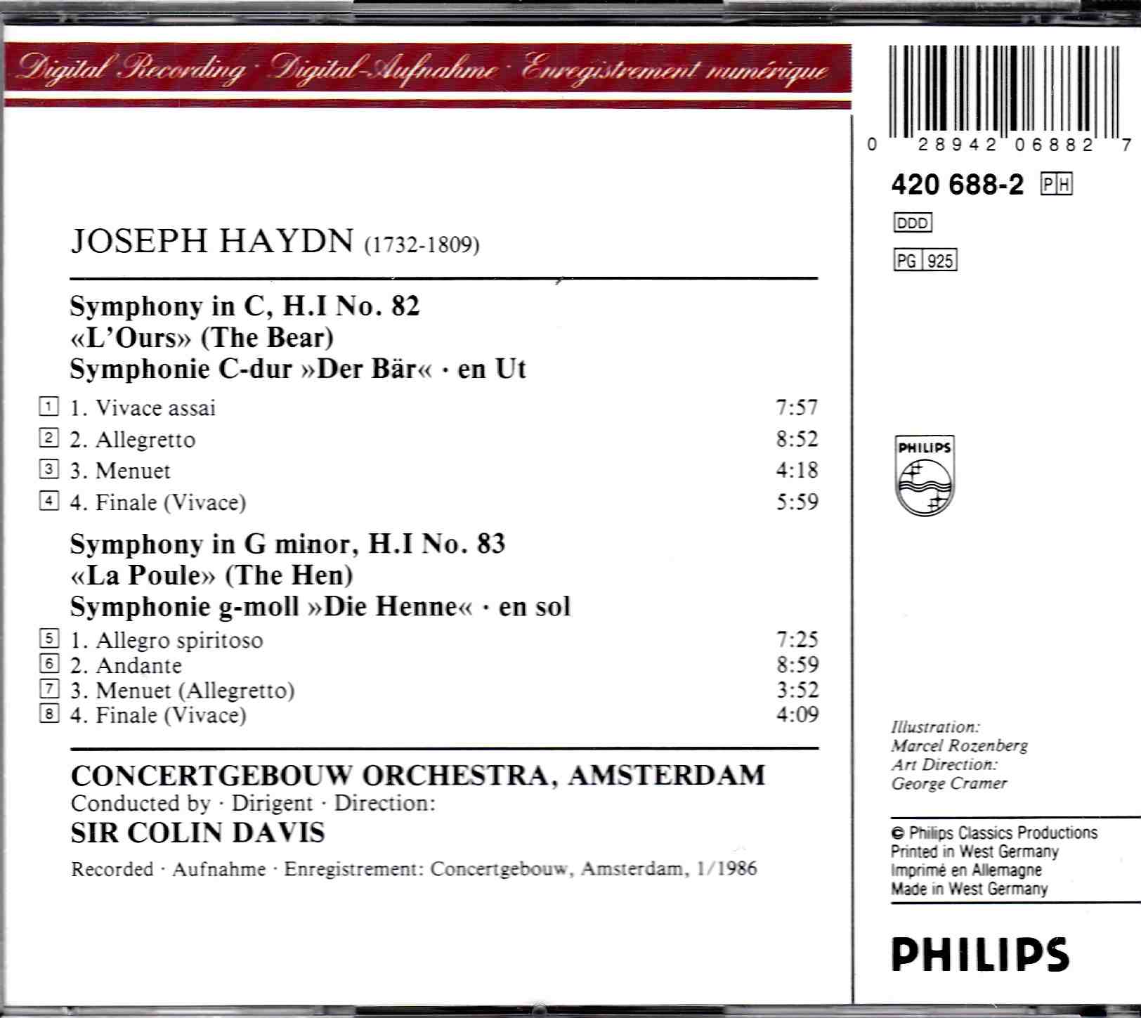 Haydn: Symphonies Nos. 82 ‘The Bear’ & 83 ‘The Hen – Concertgebouw Orch. Amsterdam, Davis | CD, Philips