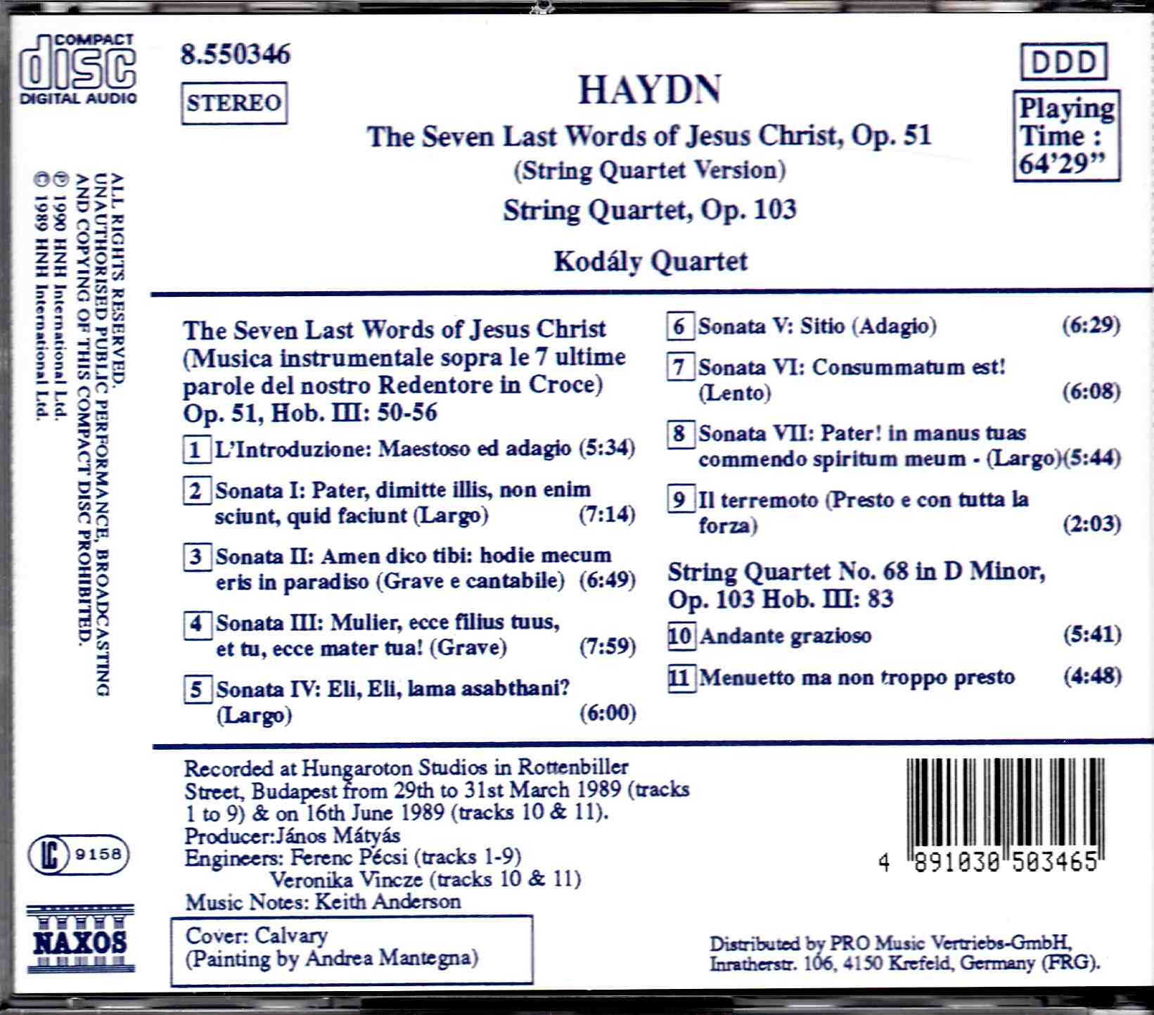 Haydn: The Seven Last Words of Jesus Christ, Op.51; String Quartet, Op.103 – Kodaly Qt | CD, Naxos