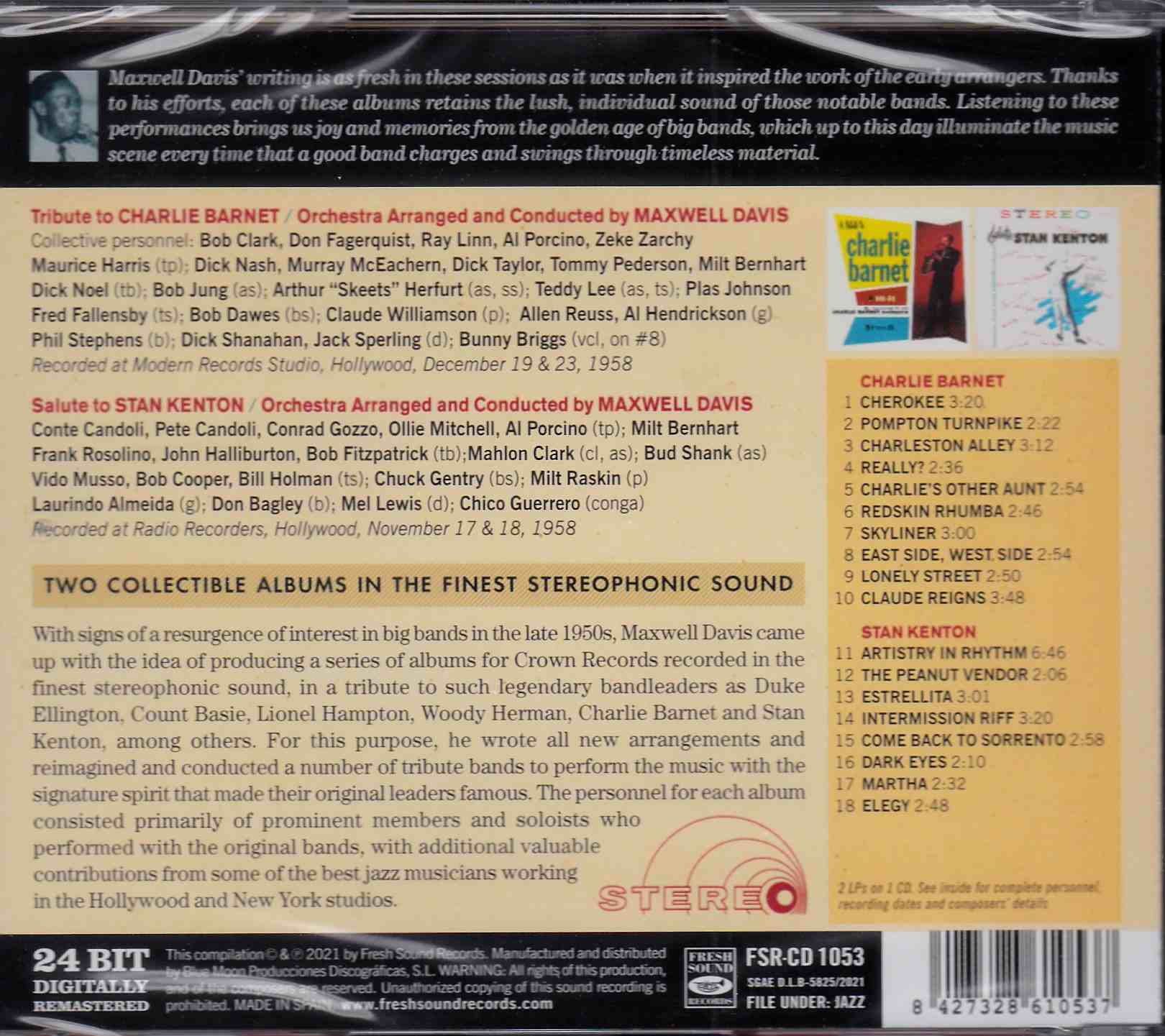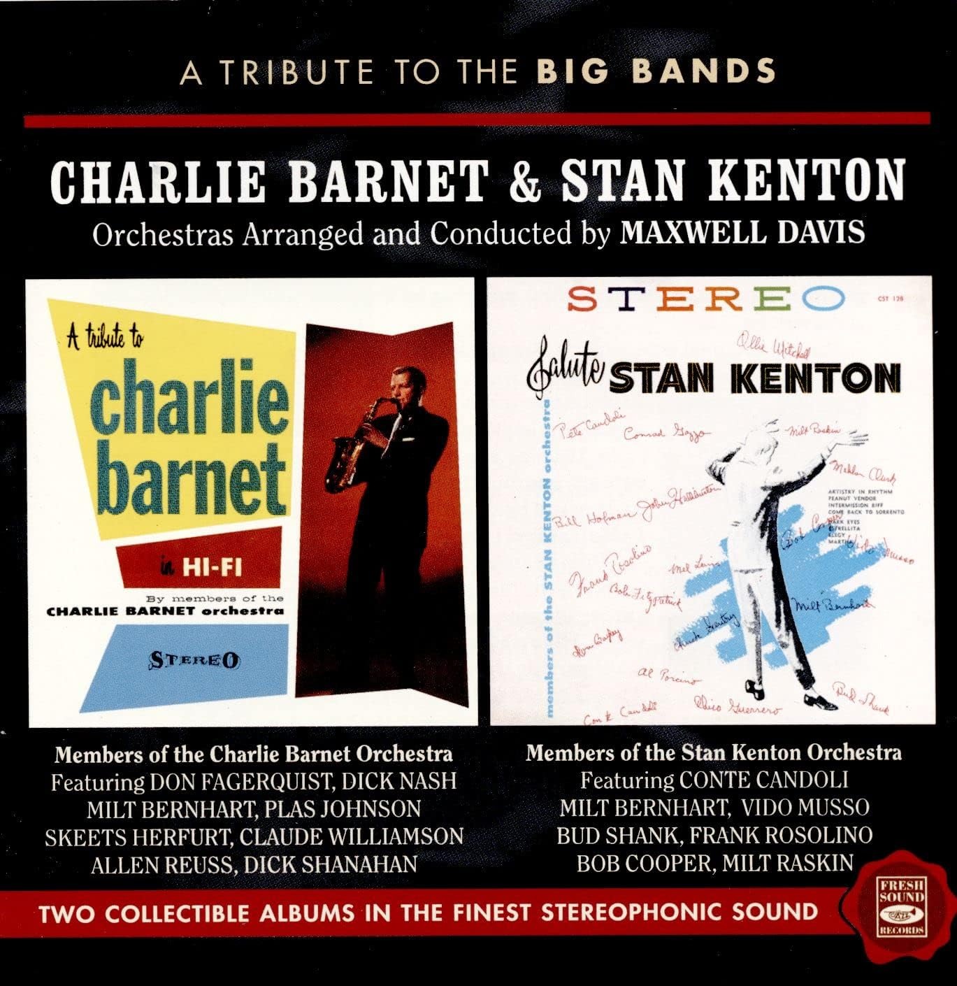 With signs of a resurgence of interest in big bands in the late 1950s, Maxwell Davis came up with the idea of producing a series of albums for Crown Records recorded in the finest stereophonic sound, in a tribute to such legendary bandleaders as Duke Ellington, Count Basie, Lionel Hampton, Woody Herman, Charlie Barnet and Stan Kenton, among others. For this purpose, he wrote all new arrangements and reimagined and conducted a number of tribute bands to perform the music with the signature spirit that made their original leaders famous. The personnel for each album consisted primarily of prominent members and soloists who performed with the original bands, with additional valuable contributions from some of the best jazz musicians working in the Hollywood and New York studios.