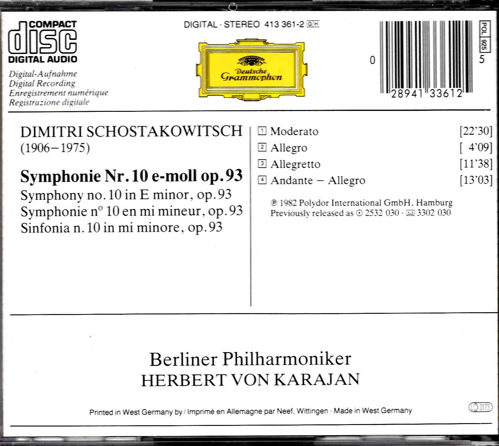 Shostakovich: Symphony No.10 in E Minor, Op.93 – Berlin PO, Karajan | CD, Deutsche Grammophon
