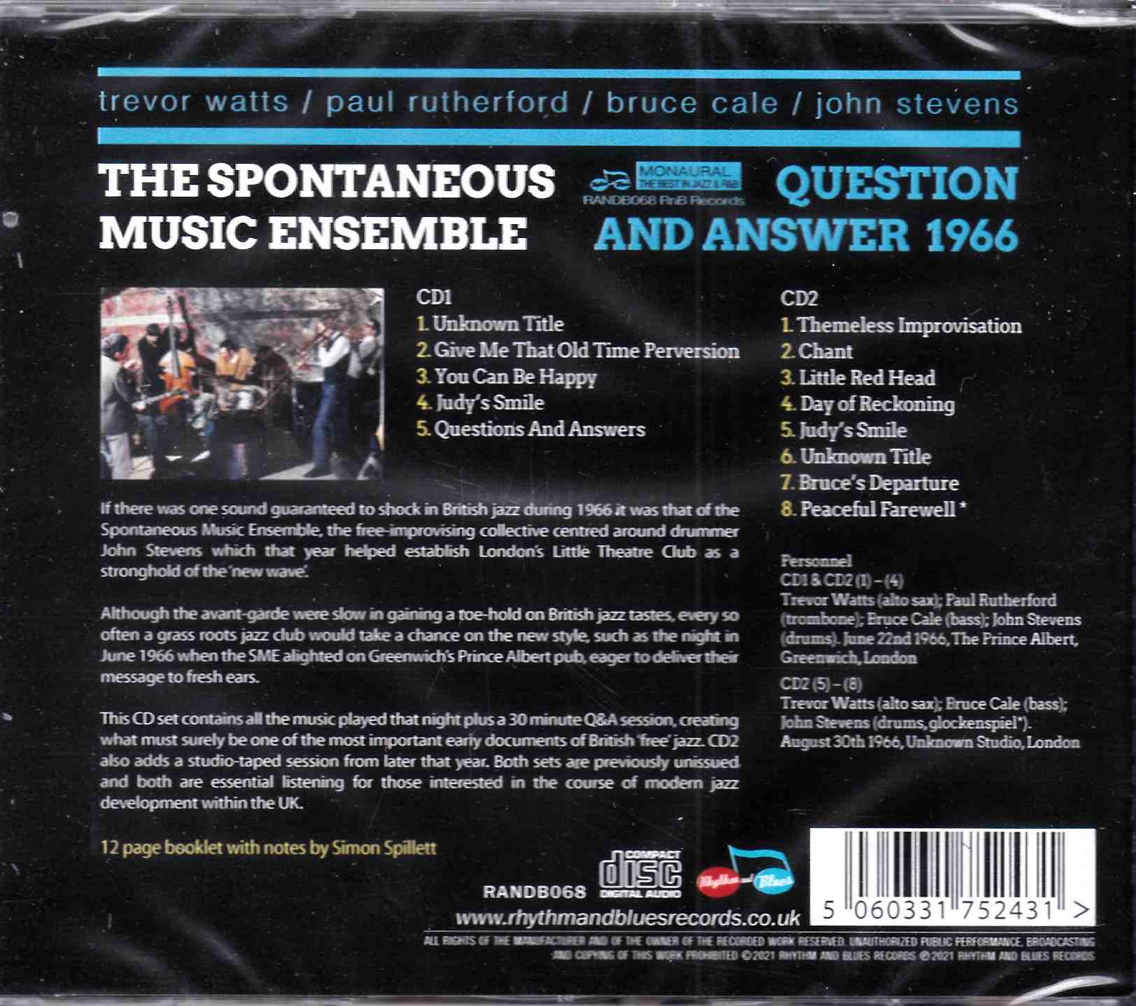 This CD set contains all the music played that night plus a 30 minute Q&A session, creating what must surely be one of the most important early documents of British ‘free’ jazz. CD2 also adds a studio-taped session from later that year. Both sets are previously unissued and both are essential listening for those interested in the course of modern jazz development within the UK. 12 page booklet with notes by Simon Spillett.