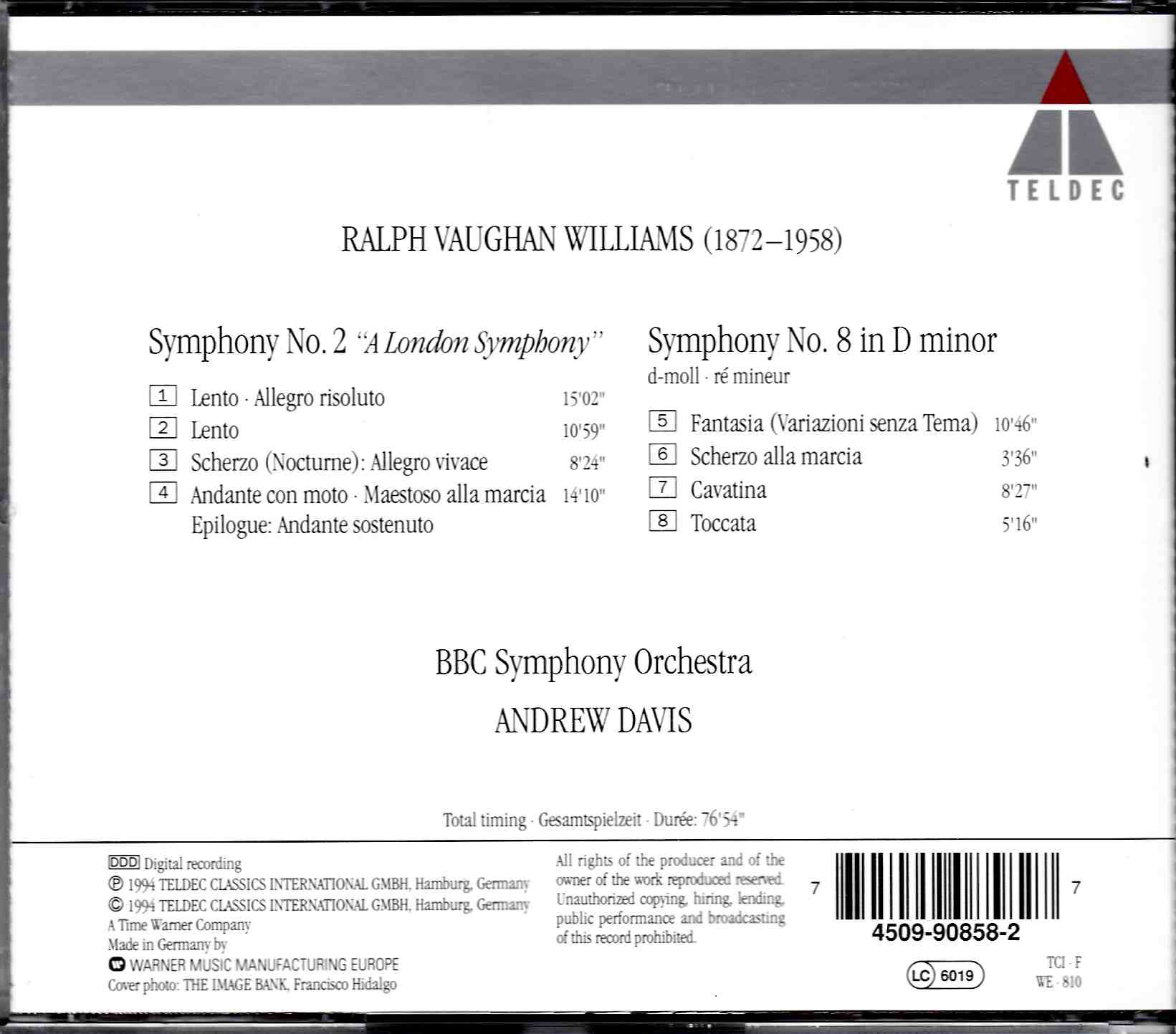 Vaughan Williams: Symphonies No. 2 “A London Symphony” & No.8 – BBC SO, Davis | CD, Teldec