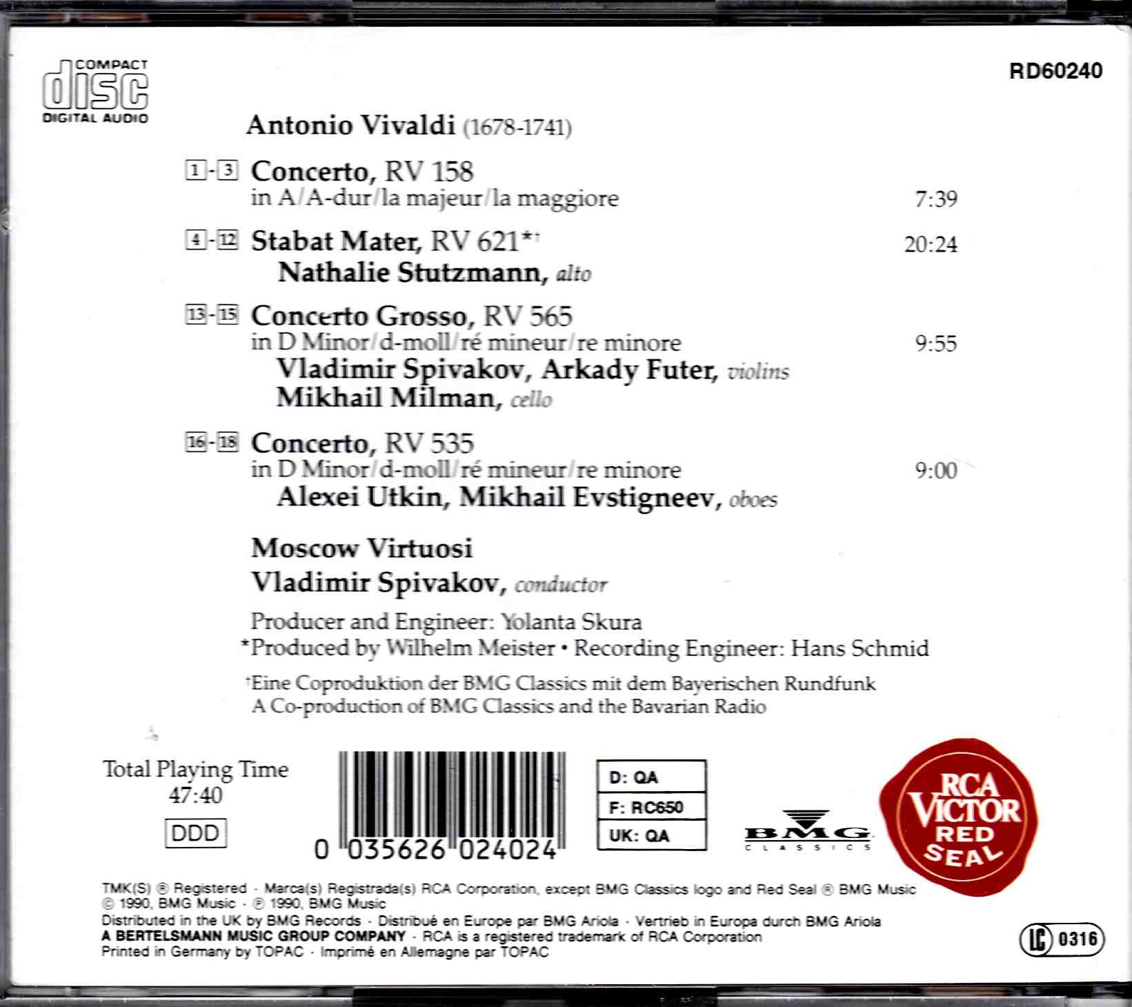 Vivaldi: Concertos & Stabat Mater – Nathalie Stulzmann, Moscow Virtuosi, Spivakov | CD, RCA Red Seal